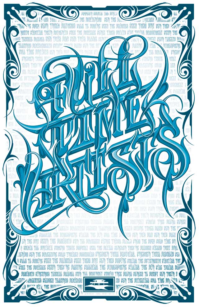 This limited edition, 11" by 17" poster print features a hand-drawn "Full Time Artists" lettering design by RaseOne and is available in a metallic blue foil and a chrome foil variations. Each copy is signed and numbered. Behind the main lettering is a wall of hundreds of F.T.A abbreviations taken from black books, song lyrics and other sources since the founding of the crew in 1991.